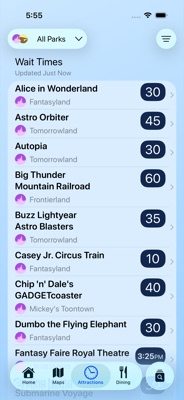 Crowd-sourced wait times updated throughout the day. Sort by time, park, proximity, or your favorites. Mark your must-do attractions and get wait-time alerts when queues drop.